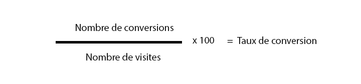 La plupart des outils d’analyse comme Google Analytics calculent automatiquement le taux de conversion. Si vous souhaitez tout de même l’effectuer manuellement, utilisez la formule suivante :